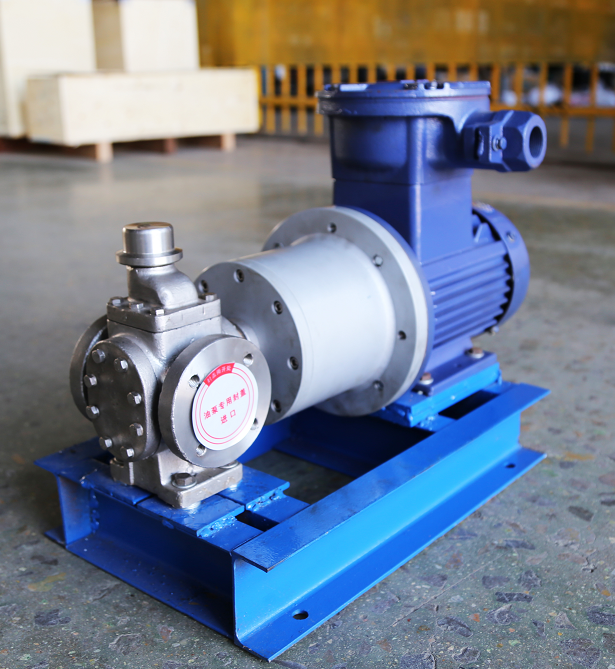 YCB系列磁力齒輪泵、磁力圓弧齒輪泵采用磁力聯(lián)軸器結(jié)構(gòu),主要由泵、內(nèi)磁鋼、外磁鋼、隔離套組成,其原理是泵的主軸與磁力聯(lián)軸器的內(nèi)磁鋼密閉連接,聯(lián)軸器外磁鋼與驅(qū)動電機或者驅(qū)動器連接,中間隔離套隔開,隔離套材質(zhì)一般選用非鐵素體(非磁性)的高電阻材料用制造,一般選用奧氏體不銹鋼材質(zhì),通過電動機帶動外磁鋼轉(zhuǎn)到,從而帶動密閉隔離套里面的內(nèi)磁鋼帶動主軸轉(zhuǎn)動,來完成磁力圓弧齒輪泵的輸送工作。