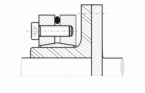 ●當脹套固定到軸套(轂)的合適位置,按給定的力矩擰緊螺栓,錐形內圈向軸套施加徑向力,這種強制摩擦聯結可安全地傳遞大扭矩和負載