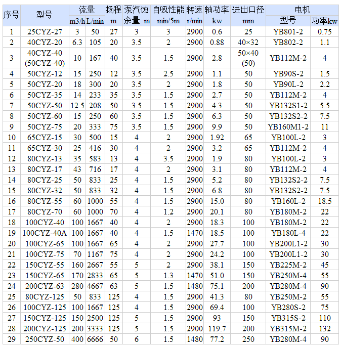CYZ型自吸式離心油泵是根據國內外有關技術資料經消化、吸收、改進后研制而成的*新泵類產品,該泵適用于石油行業、陸地油庫、油罐車的理想產品,并適合于作船用貨油泵、艙底泵、消防泵和壓載泵及機器冷卻水循環等,分別輸送汽油、煤油、柴油、航煤等石油產品和海水、清水,介質溫度-20℃-80℃,如輸送化工液體可改用耐腐蝕機械密封。